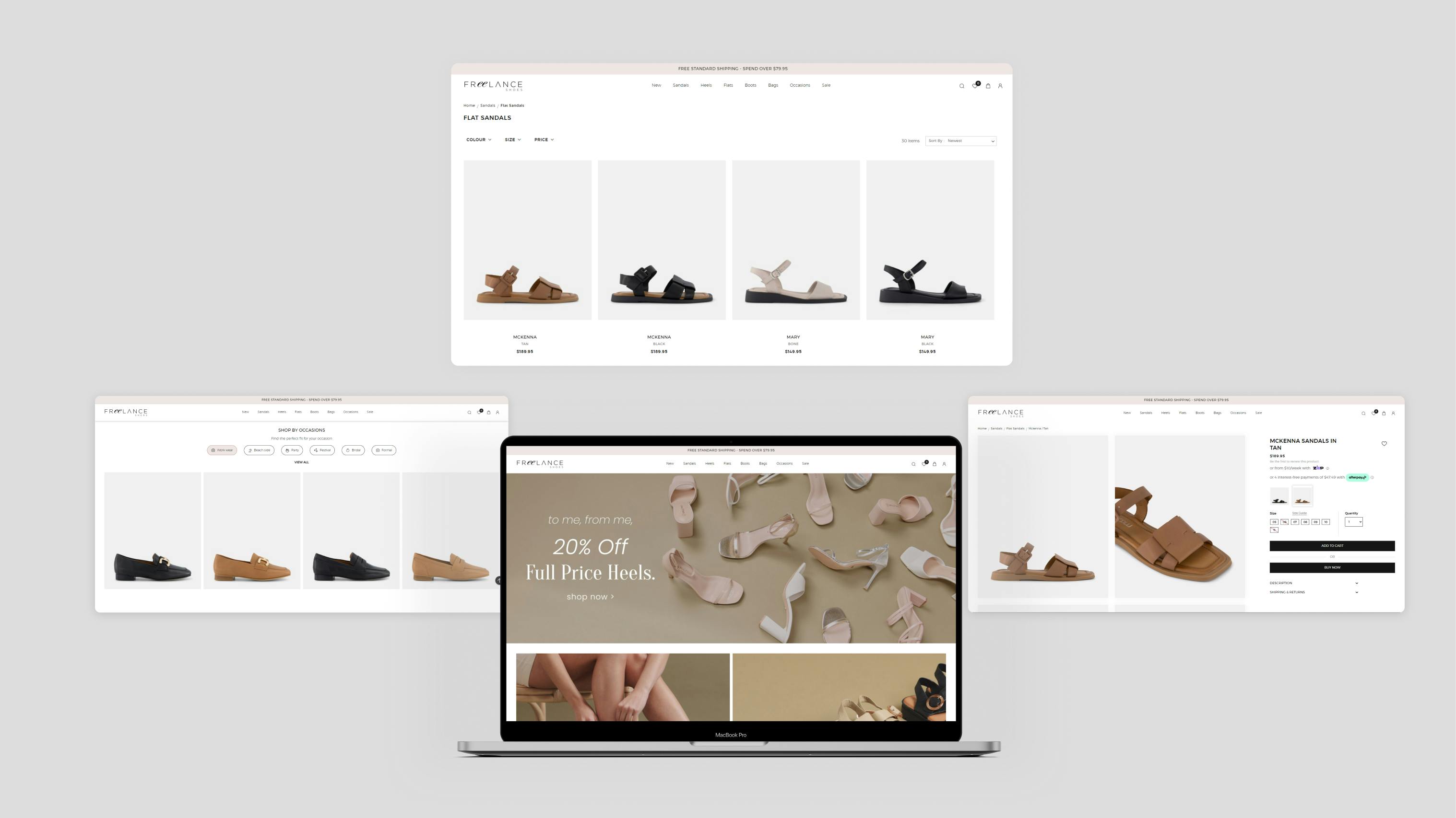 Despite experiencing rapid growth, Freelance Shoes' ecommerce platform couldn't keep up. It lacked the flexibility to showcase their diverse collection of fashion-forward footwear. Additionally, the platform wasn't built to scale seamlessly, creating concerns about handling increased traffic and demand as their business expanded. Furthermore, a suboptimal user experience frustrated browsers, resulting in lost sales conversions. Recognizing these limitations, Freelance required a dynamic solution: a customizable canvas to curate stunning product displays and highlight key pieces, intuitive navigation for effortless browsing, and human-centered design that prioritized a pleasant and engaging shopping experience.