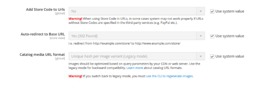 - Use a logical URL structure: Use a logical URL structure that reflects the hierarchy of your website. This makes it easier for users to navigate your website and helps search engines understand the relationships between your pages. Redirect users using appropriate URL redirects instead of them having to face a 404 error. Go to Stores->Configuration->General->Web