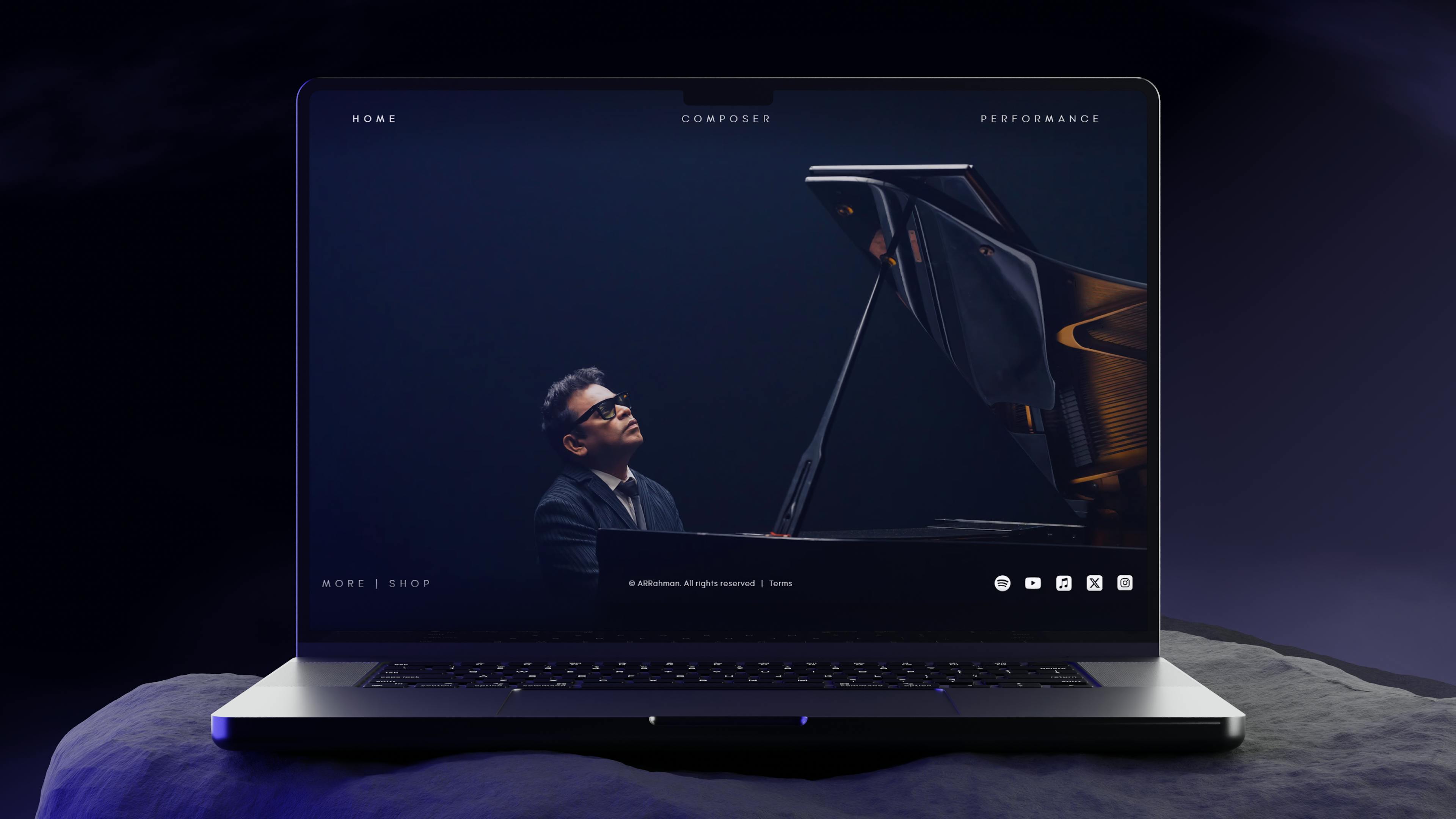 It showcases his body of work, iconic compositions, and live shows in a structured yet expressive digital experience.